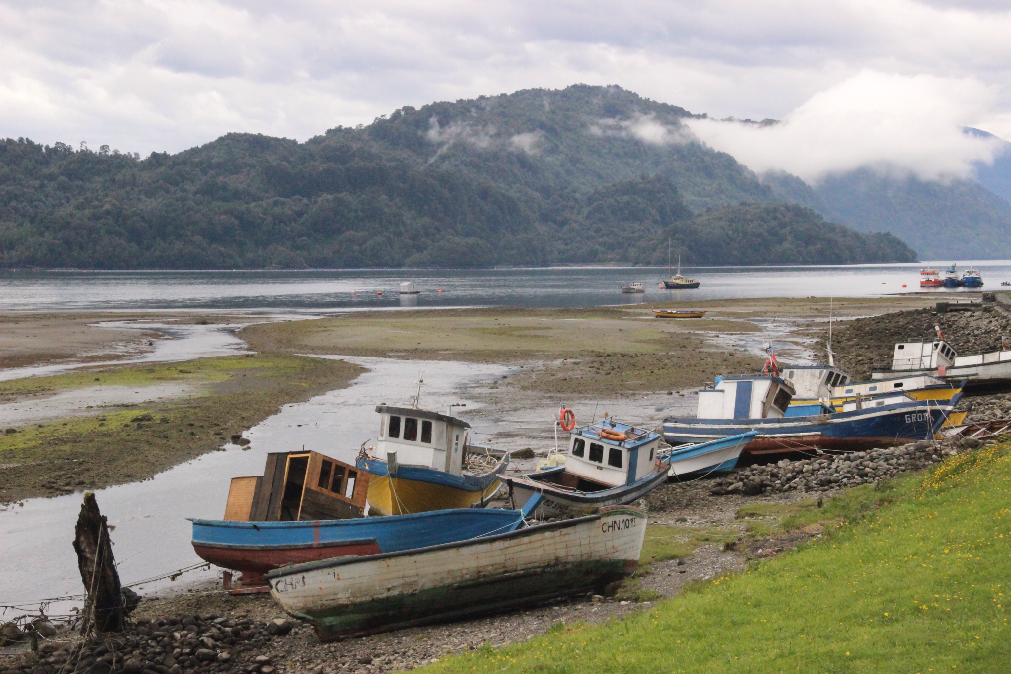 Los primeros cien kilometros ya hemos hecho. Pero ahora estamos atascados. El servicio de transbordadores en Hornopiren se ha inhabilitado debido a una tormenta de primavera violenta. Nieve, granizo, viento de 40 nudos. El clima aquí tampoco se puede planificar.