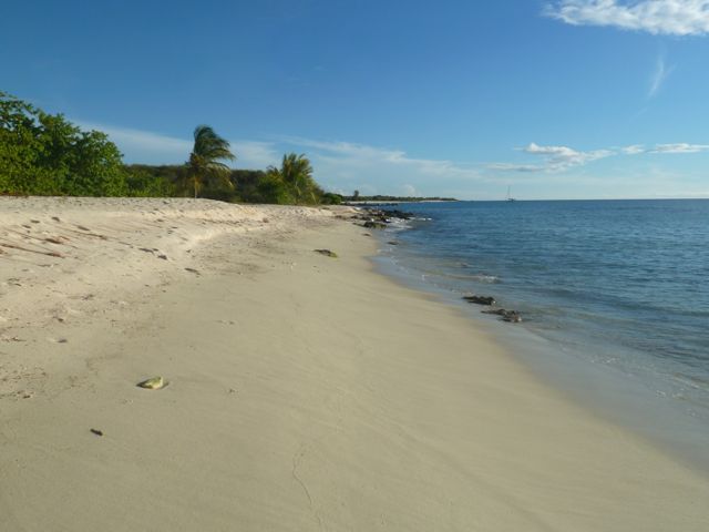 Blanca e inmaculada como unas sábanas vírgenes la tenemos a pocos metros: isla La Blanquilla (11 50 N / 64 38 W). Playas de arena blanca y fina, aguas de color turquesa, dos palmeras justo enfrente. La lluvia y los miedos de los piratas ya han pasado – ahora toca tranquilidad y un ambiente caribeño de lo mas auténtico.