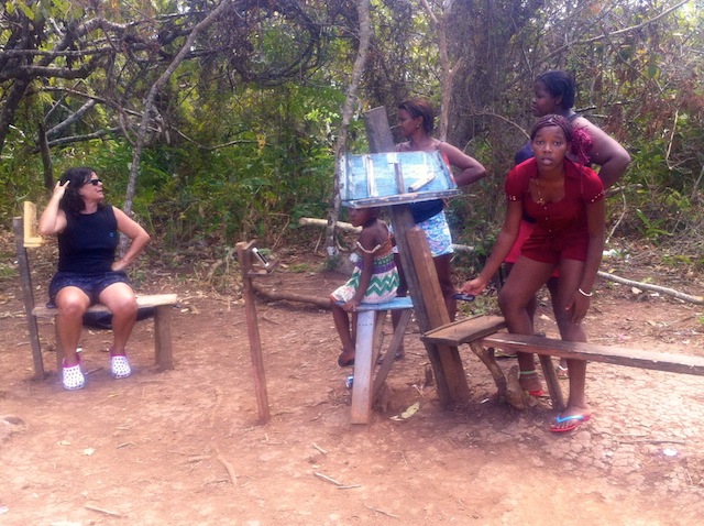 Después de una semana en plena naturaleza llegamos a la primera aldea, llamada Ensenada. Unas pocas decenas de casas, una escuela. Muchos niños, como siempre. Al igual que en otros lugares vienen enseguida remando con sus cayucos al barco. Nos interrogan y después nos proporcionan fruta. Sí, tenían internet. Rosario nos conduce hacia el lugar. Desde el pueblo hay un camino de unos 15 minutos perdido por la tupida selva. Poco a poco sospechamos que algo va mal. Pero entonces, efectivamente: en el punto más alto de la colina ya esta sentada la mitad del pueblo. Bancos y atriles hechos a mano. Es aquí donde entra una señal débil de la red móvil. Todos charlan en voz alta. Se piden jabón y cabezas de cerdo a los queridos familiares en el norte. Se jura el amor y se enviará corazones. WattsApp y SMS silban a toda velocidad. La selva está viva.