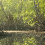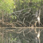 La mañana siguiente también navegamos desde nuestro yate con el chinchorro a la selva, el Río Cacique arriba. Parece como si nunca hubiera estado un hombre aquí. Manglares, aves, monos, insectos. Probablemente serpientes venenosas y cocodrilos. Pero no los vemos. Mejor así.